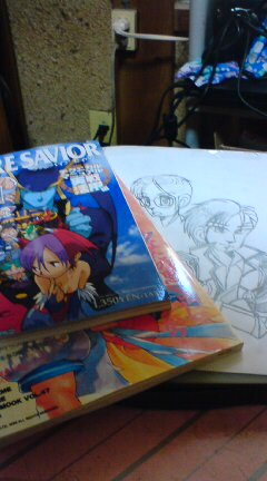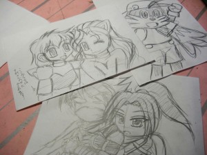 取り合えず、表紙をにぎやかに飾るデフォルメキャラの下描きだけは完成。