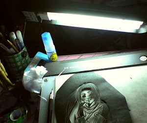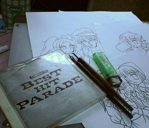 昨年の冬の祭典から、鉛筆のラフをPCで取り込んでCOMIC WORKSやPhotoshopのパスの清書主体だからねえ・・・。